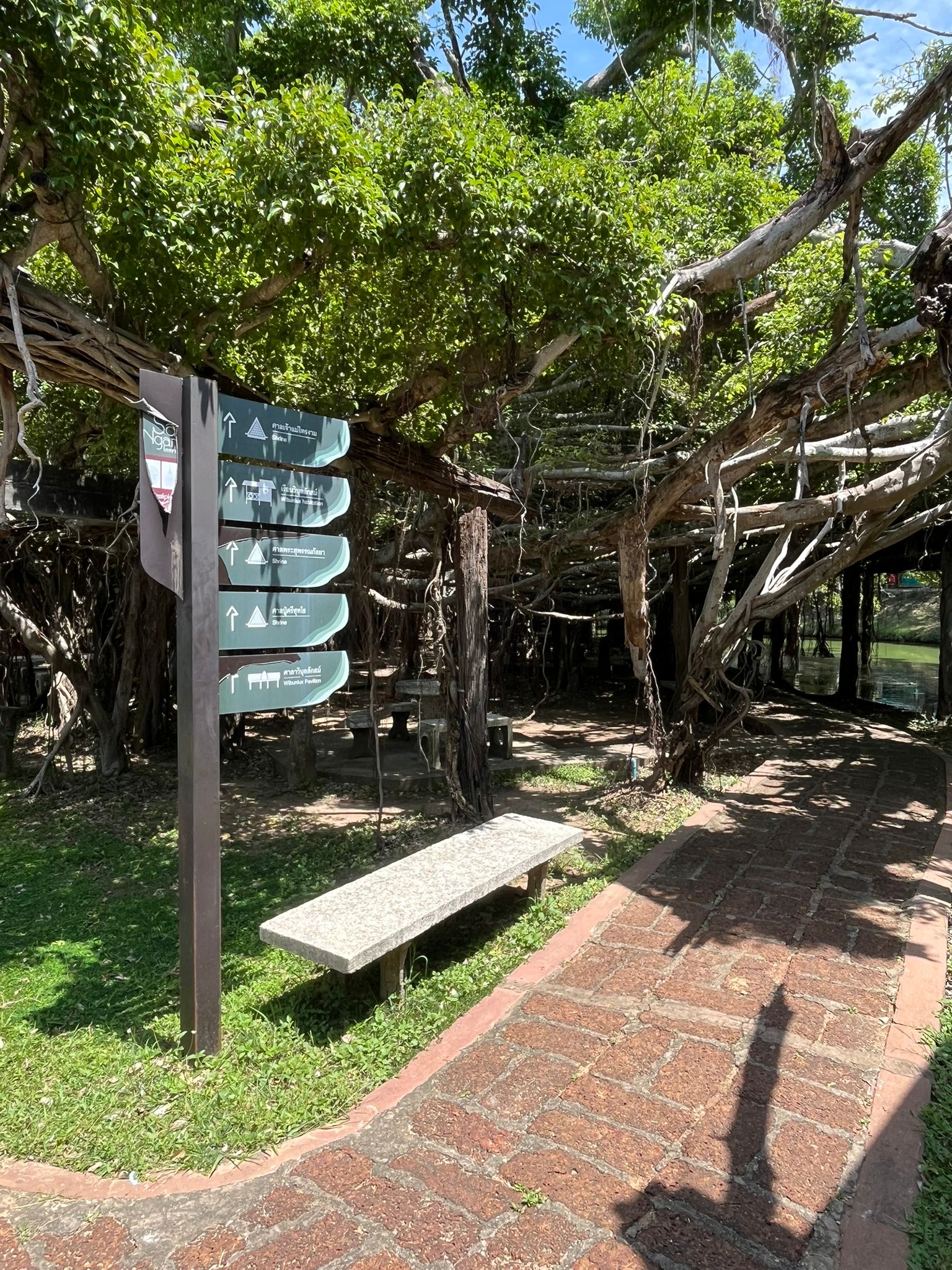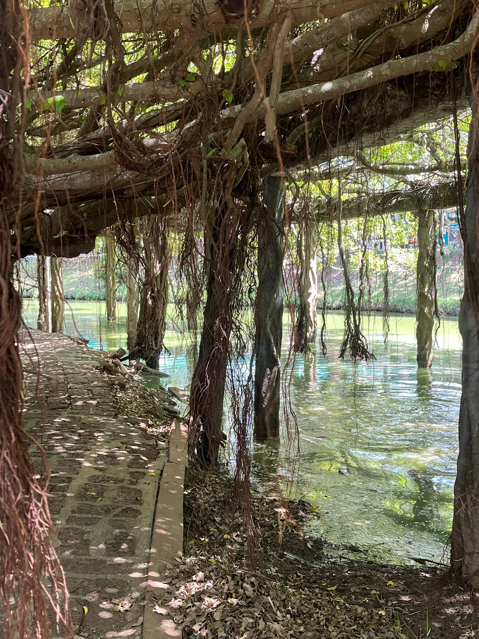 Ancient banyan trees creating a mystical forest atmosphere. Perfect for peaceful morning walks and photography. As it gets very hot by midday, it's a good idea to grab an early lunch there. The food court is located in the area above the banyan trees.
